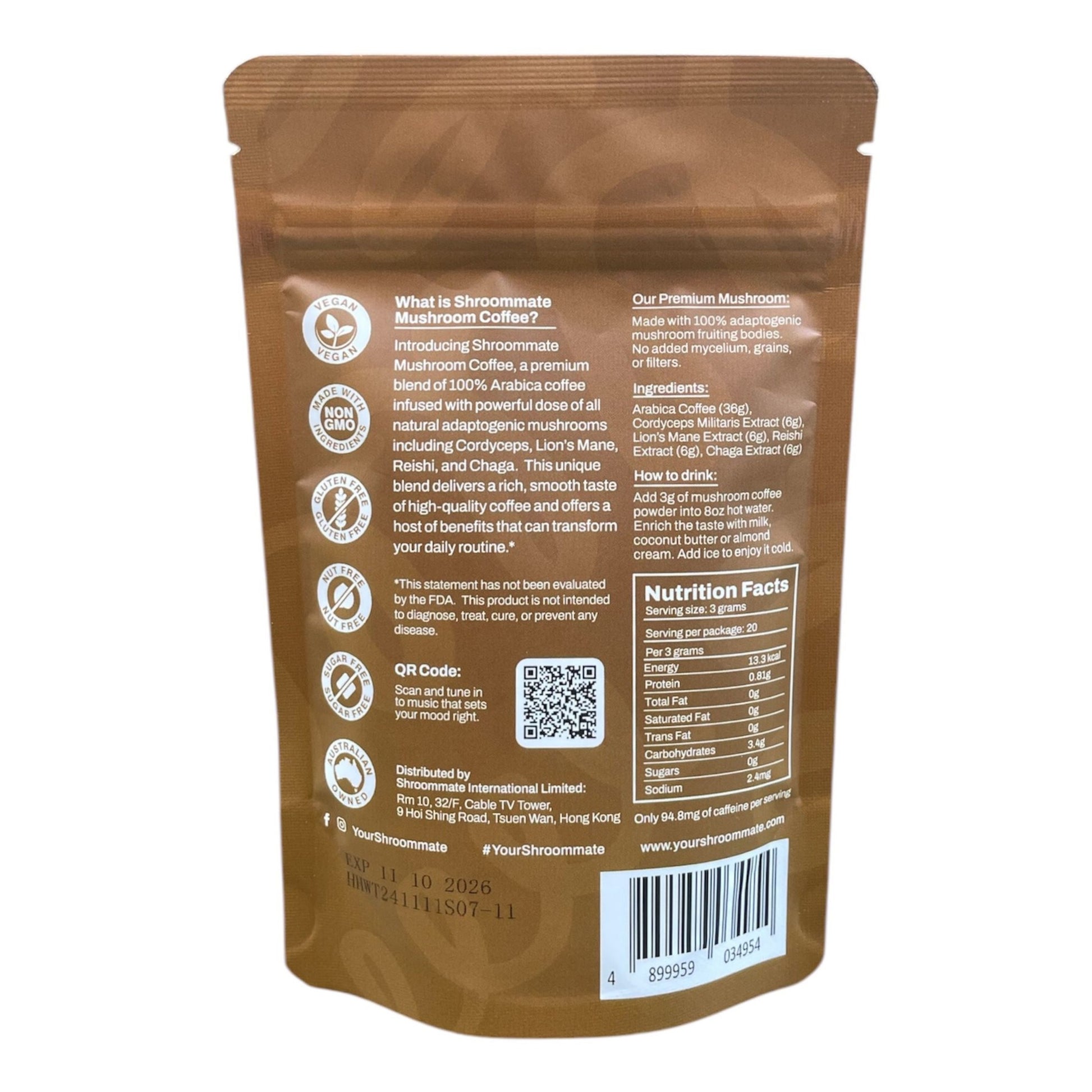 Formulated by our Mushroom of experts from Australia, we have included premium mushrooms of Cordyceps, Lion's Mane, Reishi and Chaga into our Shroommate Mushroom Coffee.